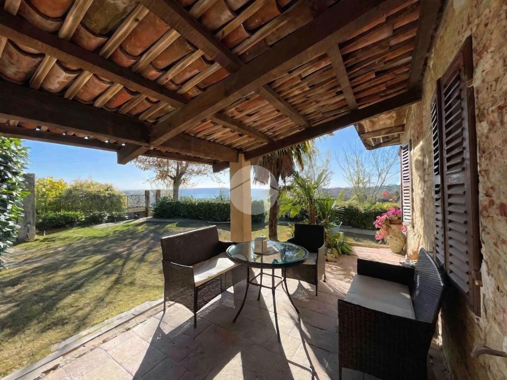 Il caseggiato è circondato da un giardino privato di circa 760 mq, disposto in modo da formare una terrazza con panorama sulle colline e montagne circostanti.